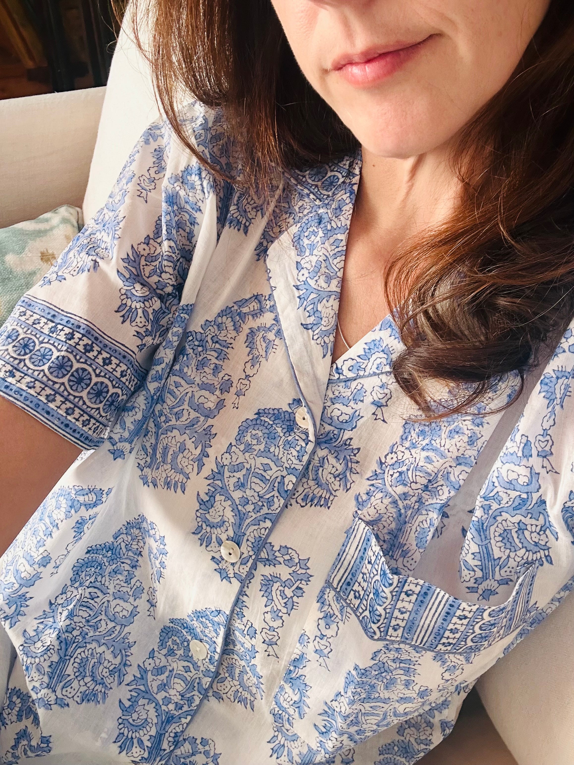 • Pijama 100% algodón Indio estampado a mano con bloques de madera.